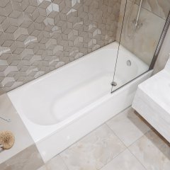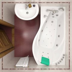 Хочу заметить, что у этой марки есть модели на любую ванную. Нам нужна была маленькая ванна на 140 см и вдобавок ассиметричная. Нашли подобную в другом более крупном магазине сантехники, но там была только ванна, ориентированная в правую сторону. Но нам нужна была ЛЕВАЯ. А в этом магазине мы нашли ту, которая нам нужна. Наконец-то наш маленький санузел обзавелся своей ванной.